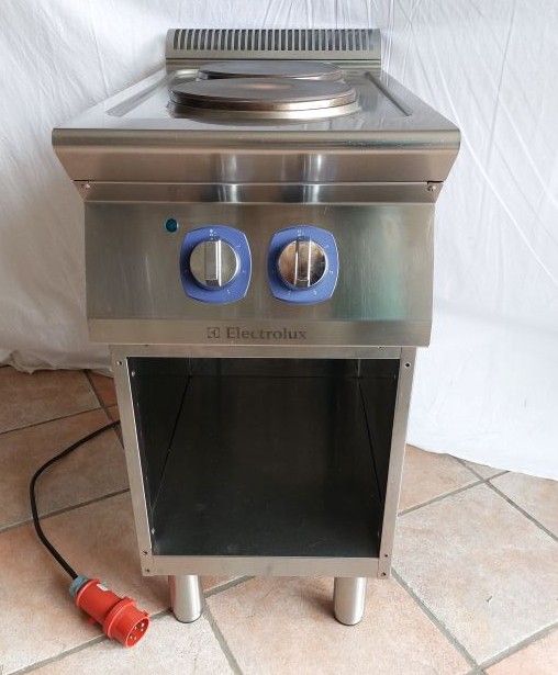 Elektrokocher Standgerät 2-Platten-Herd Standgerät Electrolux, Leistung 5,2 kW, 400 V, Unterbau dreiseitig geschlossen, vorne offen. Maße: 400 x 730 x 850Preis: 390,00 € Druckversion